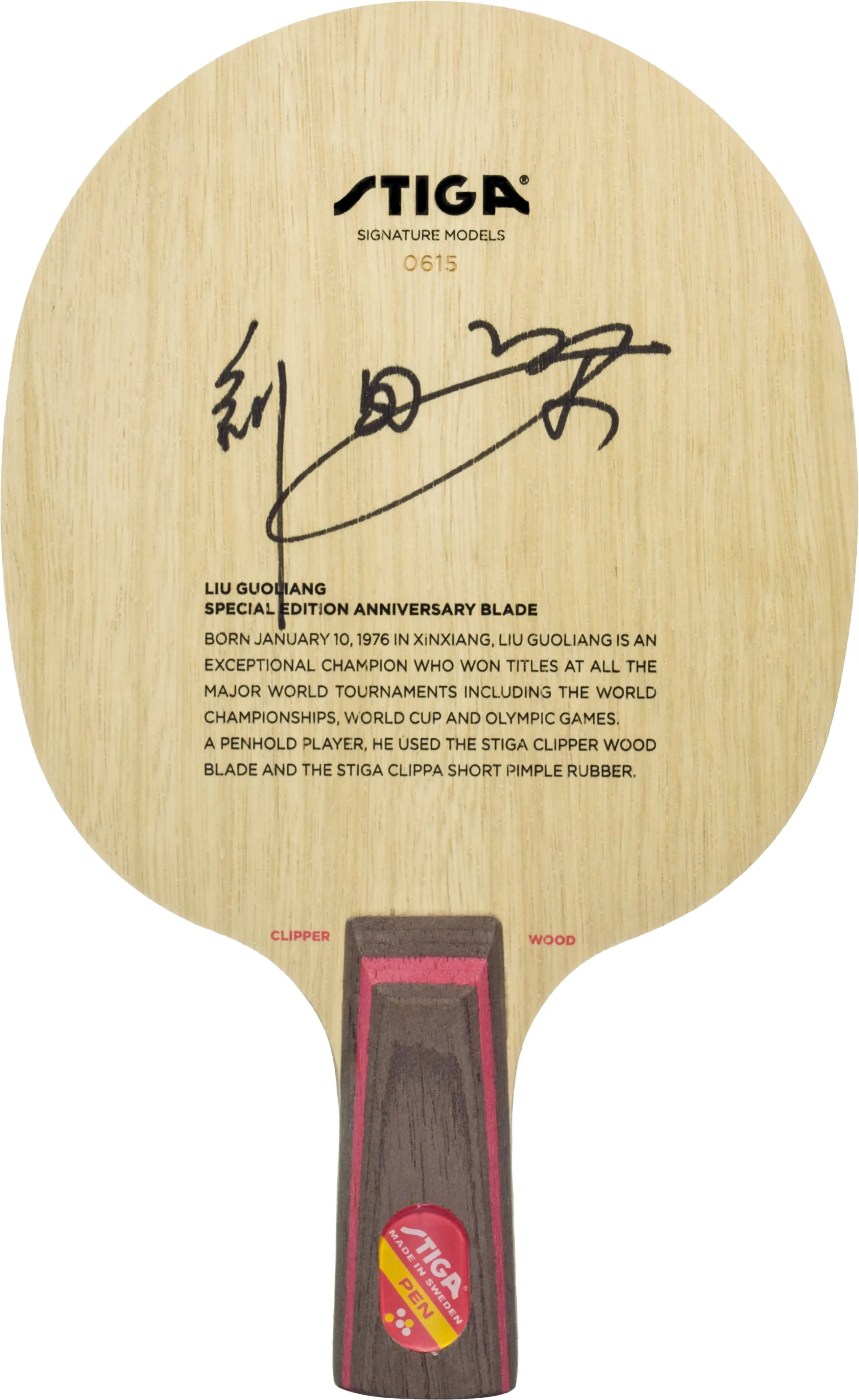 斯帝卡特别为乒坛传奇刘国梁先生推出珍藏版底板,源自刘国梁运动员时期一直使用的斯帝卡底板——Clipper Wood。进攻型七层底板,因速度而载誉全球,被众多世界级选手使用过。WRB工艺带来更快更强劲的回球与极佳手感,适合需要强劲出球力量的选手。限量版礼盒,更值得您收藏。