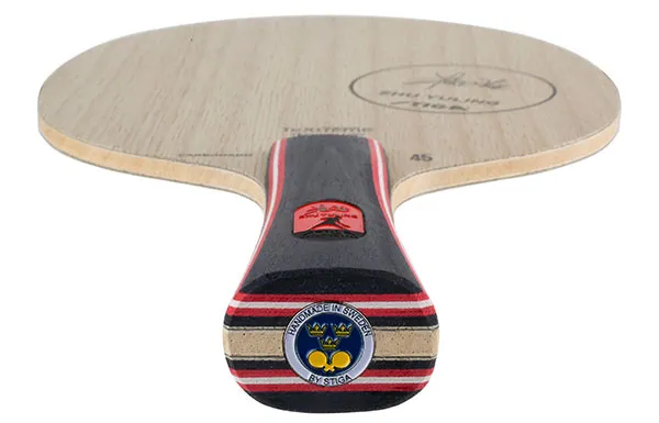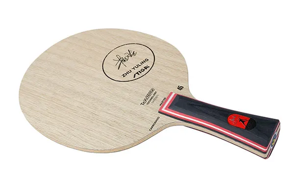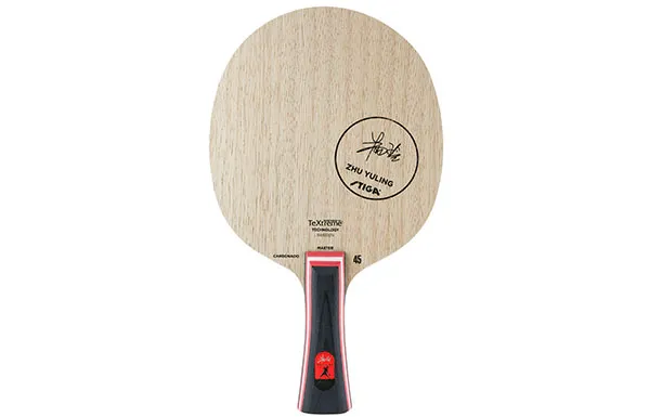 Carbonado 45 Zhu Yuling精选符合朱雨玲手感要求的克重。与普通版本的Carbonado 45底板相比,朱雨玲专属底板严格甄选靠近树木根部的木材,生长年份更长,木质更硬,更加符合朱雨玲需要的底板速度。区别于45的白色铭牌,朱雨玲和斯帝卡团队为此款底板联合设计了专有的红色铭牌,定制的红色以及铭牌上专门设计的签名和赛场剪影突出它的特殊身份。该款底板配以特质PU木质精品盒,内含限量乒乓球、复刻铭牌钥匙扣以及朱雨玲珍藏册。